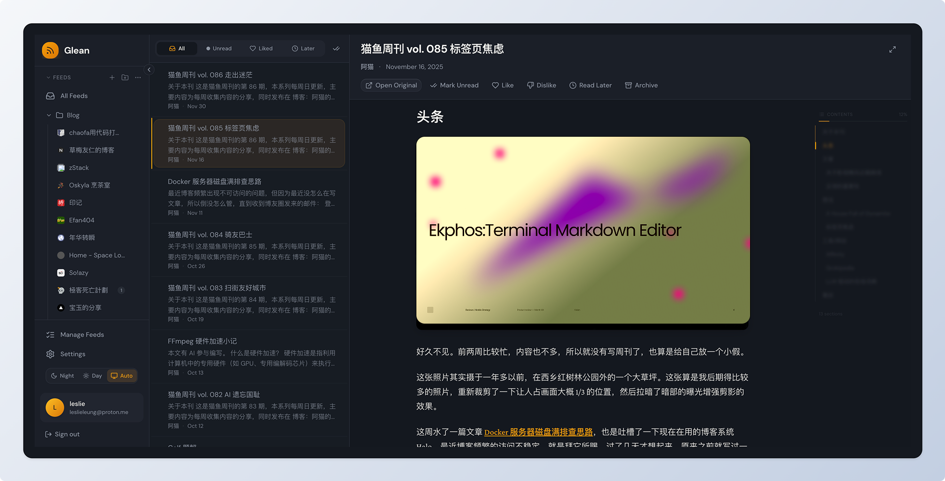 In an era where data privacy is non-negotiable, ditching bloated, ad-riddled apps for a self-hosted RSS reader like Glean is a game-changer. If you’re tired of Big Tech tracking your reading habits, Glean offers a sleek, open-source solution that puts you in control. Built by Leslie Leung, this self-hosted RSS reader combines feed aggregation with smart knowledge management—think folders, tags, and a “read-later” queue—all running on your own server. Let’s dive into why Glean deserves a spot in your tech stack.